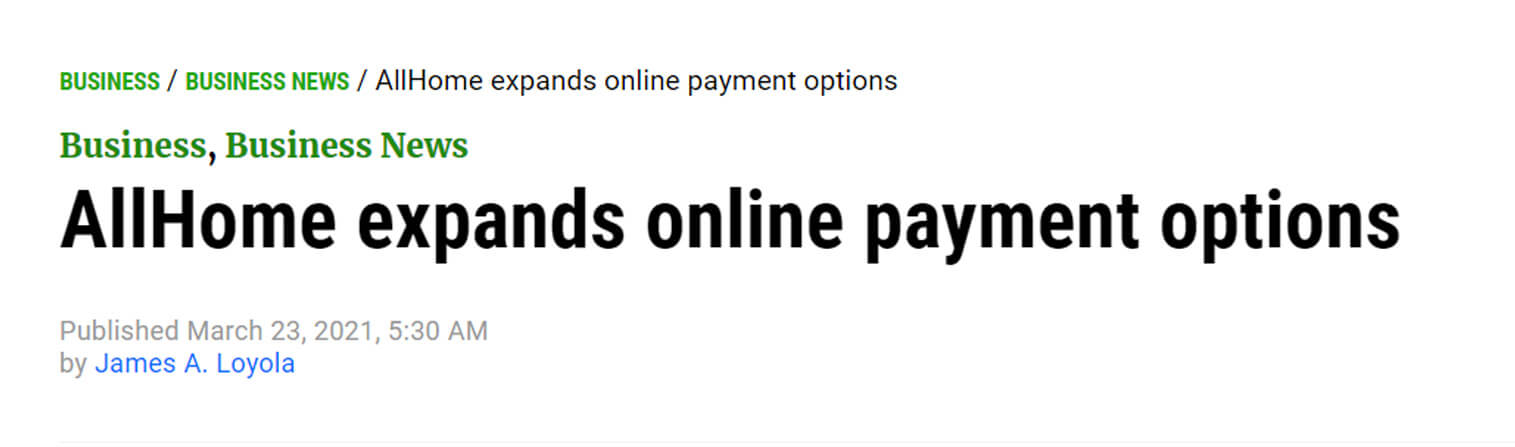 AllHome Corporation, owner of the country’s pioneering one-stop home center, has expanded its online payment options to beef up sales by making shopping even more convenient for its customers.