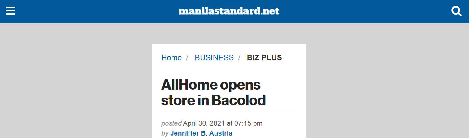 AllHome said in a disclosure to the stock exchange it launched its 53rd store at GM Cordova Ave-Buri Road, Honorato Manalo St. in Barangay Mandalagan, Bacolod City.