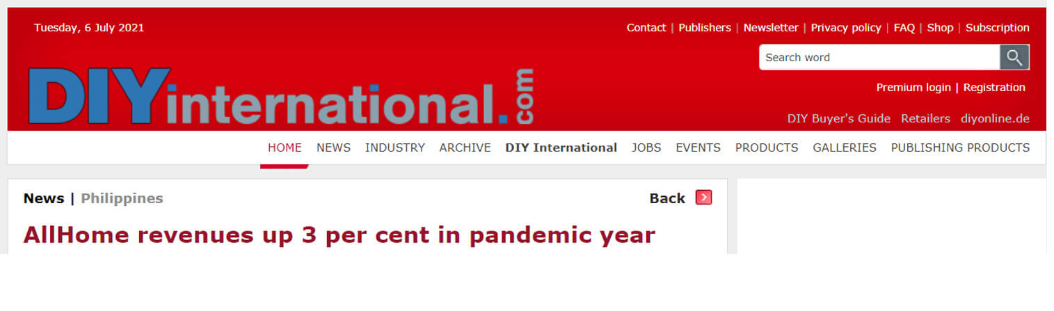 A slew of strategies implemented by Philippine home improvement retailer AllHome as a response to the difficult business environment created by the onset of the Covid-19 pandemic has paid off, as the company ended 2020 on a positive financial note. AllHome reported a three per cent rise in full year sales to PHP 12.4 bn (EUR 217 mio) in a year that required retail establishments to shutter brick and mortar stores for a prolonged period in a bid to contain the Covid-19 contagion. Net income was down five per cent to PHP 1 bn (EUR 17,5 mio) from the previous year’s PHP 1.05 bn.