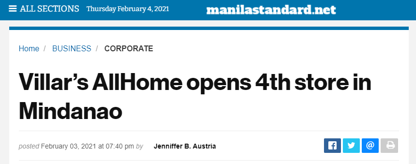 Read this here: https://manilastandard.net/business/corporate/346072/villar-s-allhome-opens-4th-store-in-mindanao.html